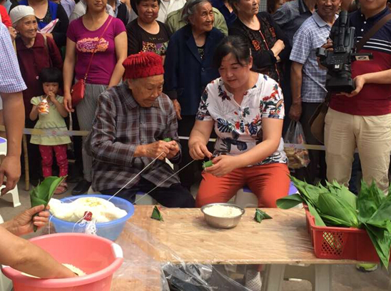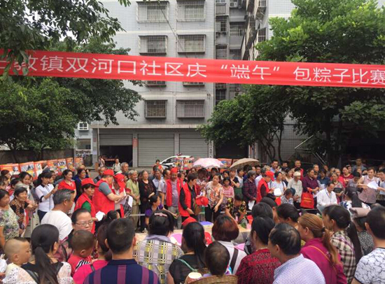 在端午节即将到来之际,三教镇人大组织区镇人大代表、机关干部、青年自愿者等于6月3日上午在双河口社区举行了“庆端午包粽子比赛”,把包好的粽子和慰问品送给社区的贫困户和敬老院的老人。