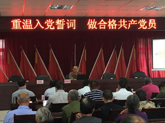 赵洪生从入党誓词的历史沿革、入党誓词的变与不变、入党誓词的内涵等方面系统地进行讲解,通过列举大量的史实和鲜活的案例,反映出我党具有与时俱进的先进性和善于把握不同历史时期的主题和要求来发展党员,不变的入党誓词反映我们党为人民服务的真心、艰苦奋斗的恒心、从严治党的决心、实现理想的信心、高度重视党员的党性和理想信念教育从未改变。赵洪生指出,东岳村作为永川区后进村党支部,村里各位党员同志要时刻牢记入党誓言,不忘入党初心,时刻以党员的标准严格要求自己、以党员的先进性鞭策激励自己,发扬优良传统、坚定理想信念、牢记职责使命,立足自身岗位,用心工作,奋发进取、争先创优,早日摘掉后进村党支部的帽子,做一名合格的共产党员,以实际行动为党旗增光添彩,以实际行动兑现对党的庄严承诺。