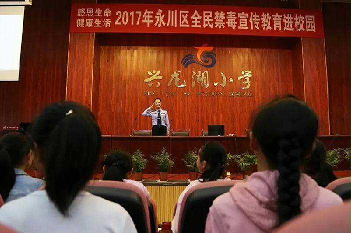 “大家知道林则徐虎门销烟的故事吗?……美丽的罂粟花为什么被称为罪恶之花?……”“我知道!我知道!”永川区兴龙湖小学的礼堂里传来孩子们争先恐后的抢答声,两百余名孩子们认真听讲,争先举手回答提问。