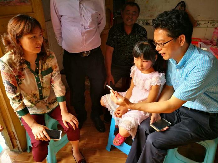 周炯代表和心理医生一起上门看望留守儿童